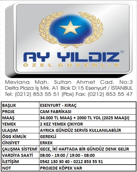 ESENYURT KIRAÇ CAM FABRİKASI ERKEK GÜVENLİK GÖREVLİSİ ARANIYOR
