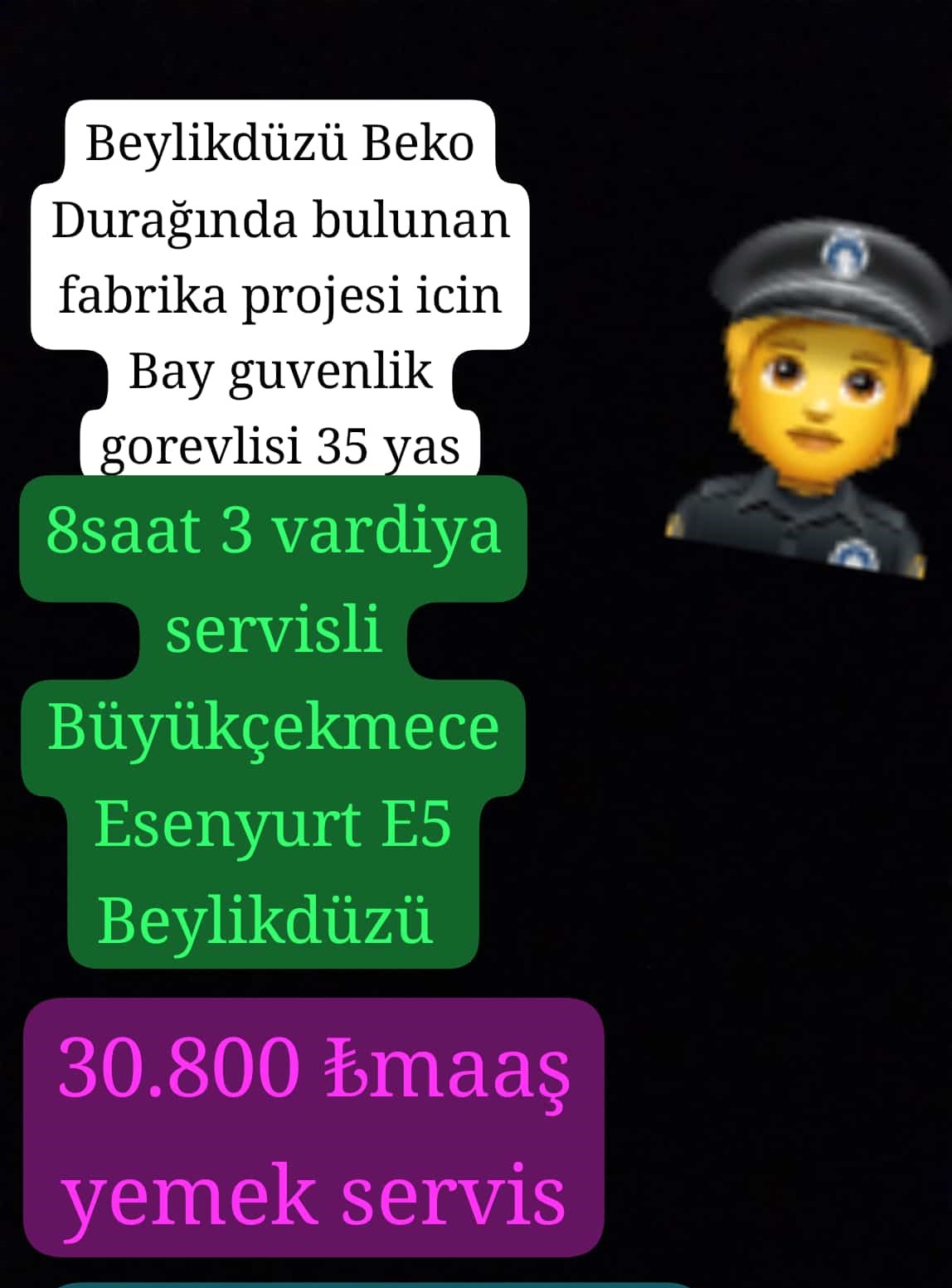 Beylikdüzü beko durağında bulunan fabrika projesi için bay güvenlik görevlisi 35 yaş