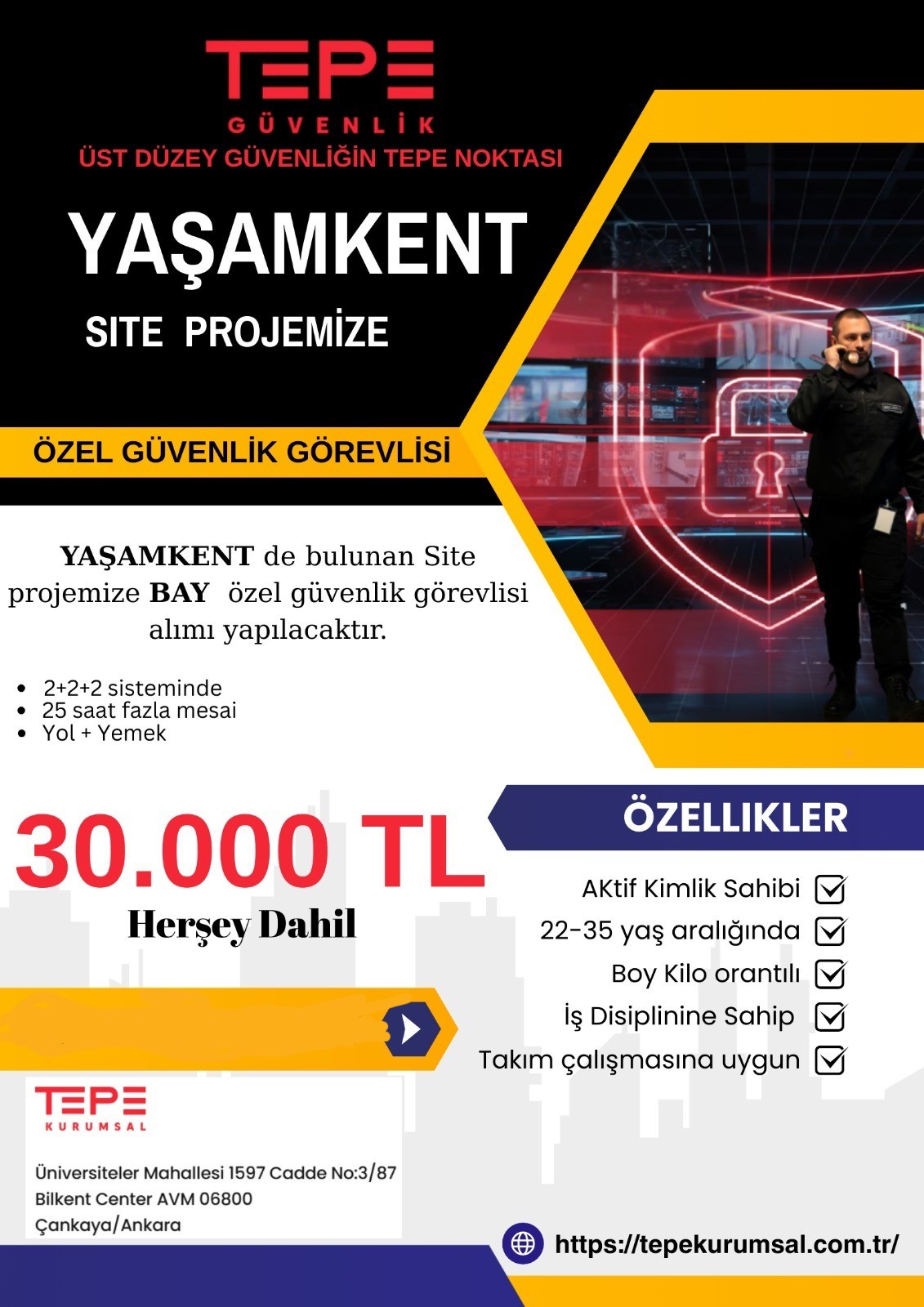 YAŞAMKENT SİTE PROJEMİZE BAY ÖZEL GÜVENLİK GÖREVLİSİ ALIMI YAPILACAKTIR