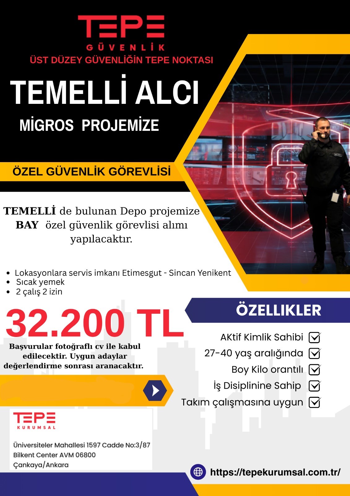 TEMELLİ ALCI MİGROS PROJEMİZE ERKEK GÜVENLİK ALINACAKTIR.