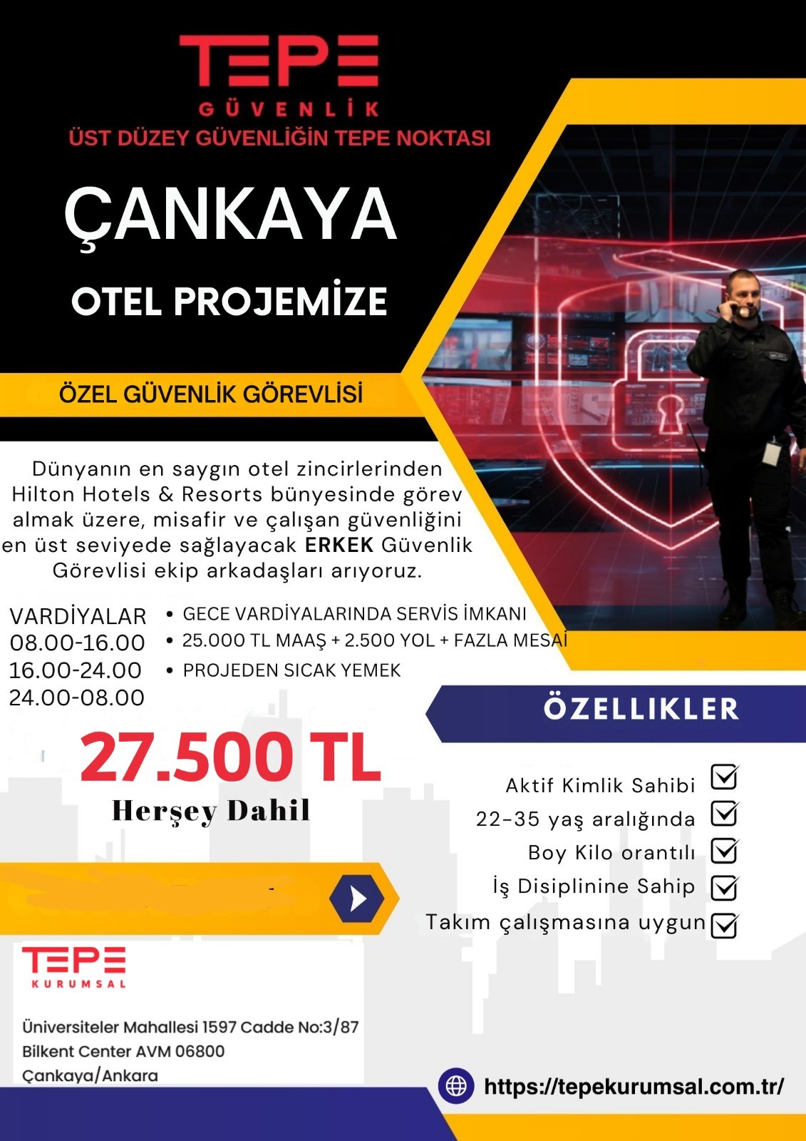 ÇANKAYA OTRL PROJEMİZE ERKEK GÜVENLİK ARANIYOR