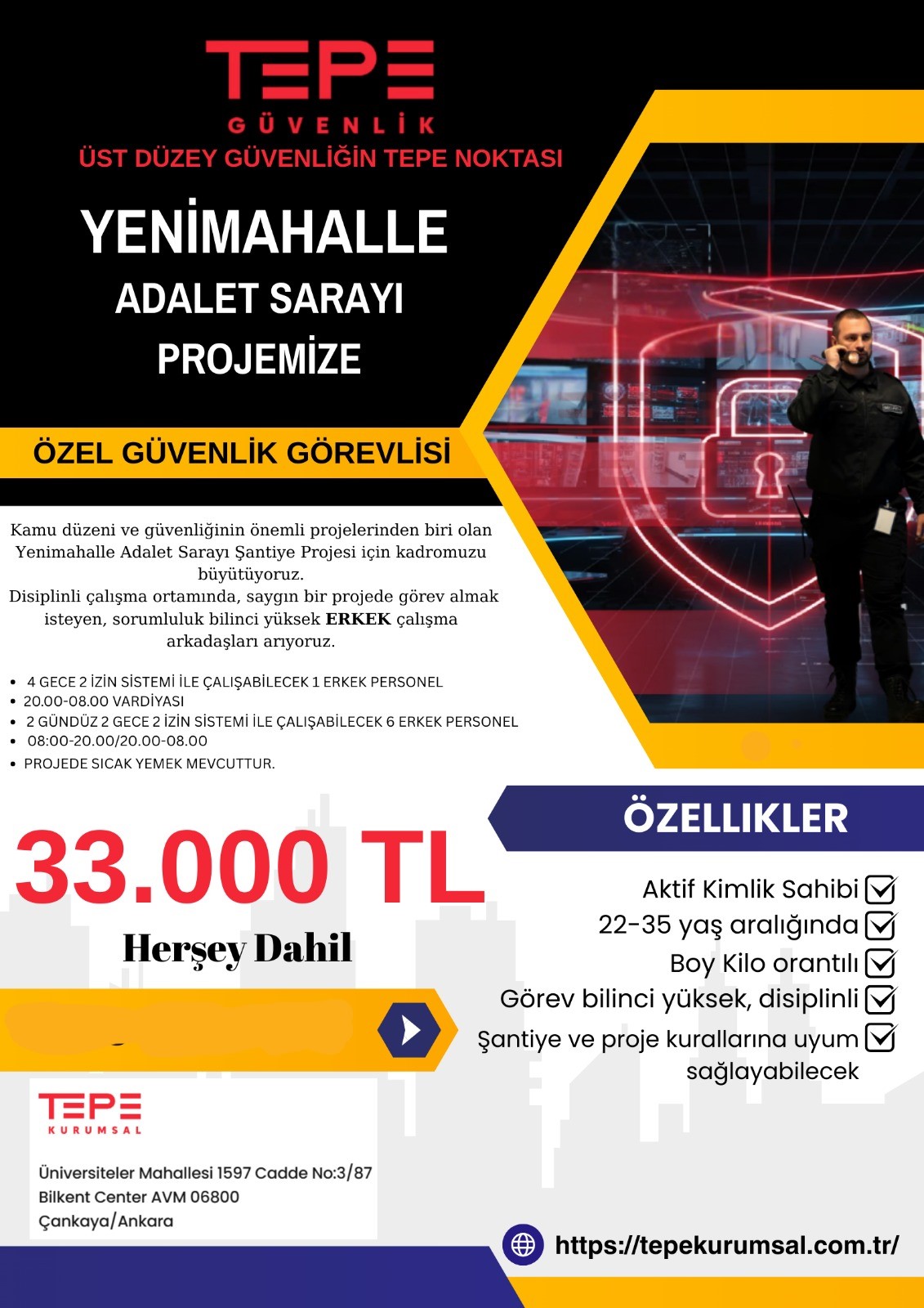 YENİMAHALLE ADALET SARAYI PROJEMİZDE ERKEK GÜVENLİK ARANIYOR