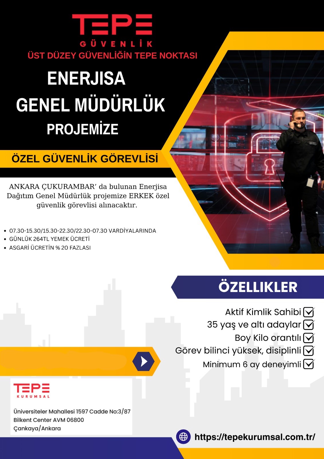 ENERJISA GENEL MÜDÜRLÜK PROJEMİZE ERKEK GÜVENLİK ALINACAKTIR