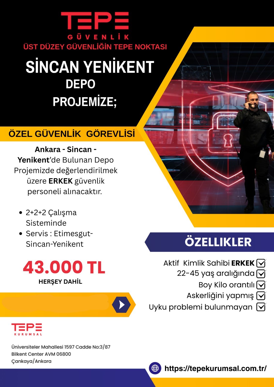 Ankara sincan yenikent depo projemiz bay güvenlik aranıyor