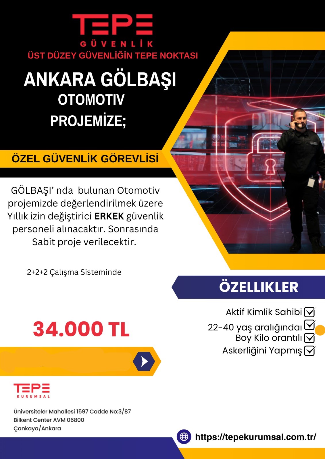 Ankara gölbaşı otomotiv projemizde bay güvenlik arıyoruz