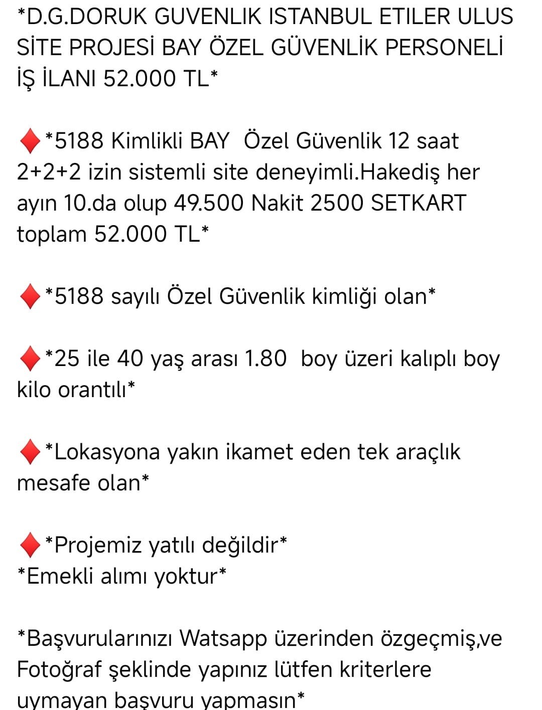 ETİLER ULUS SİTESİ BAY GÜVENLİK 52.000 BİN MAAŞ