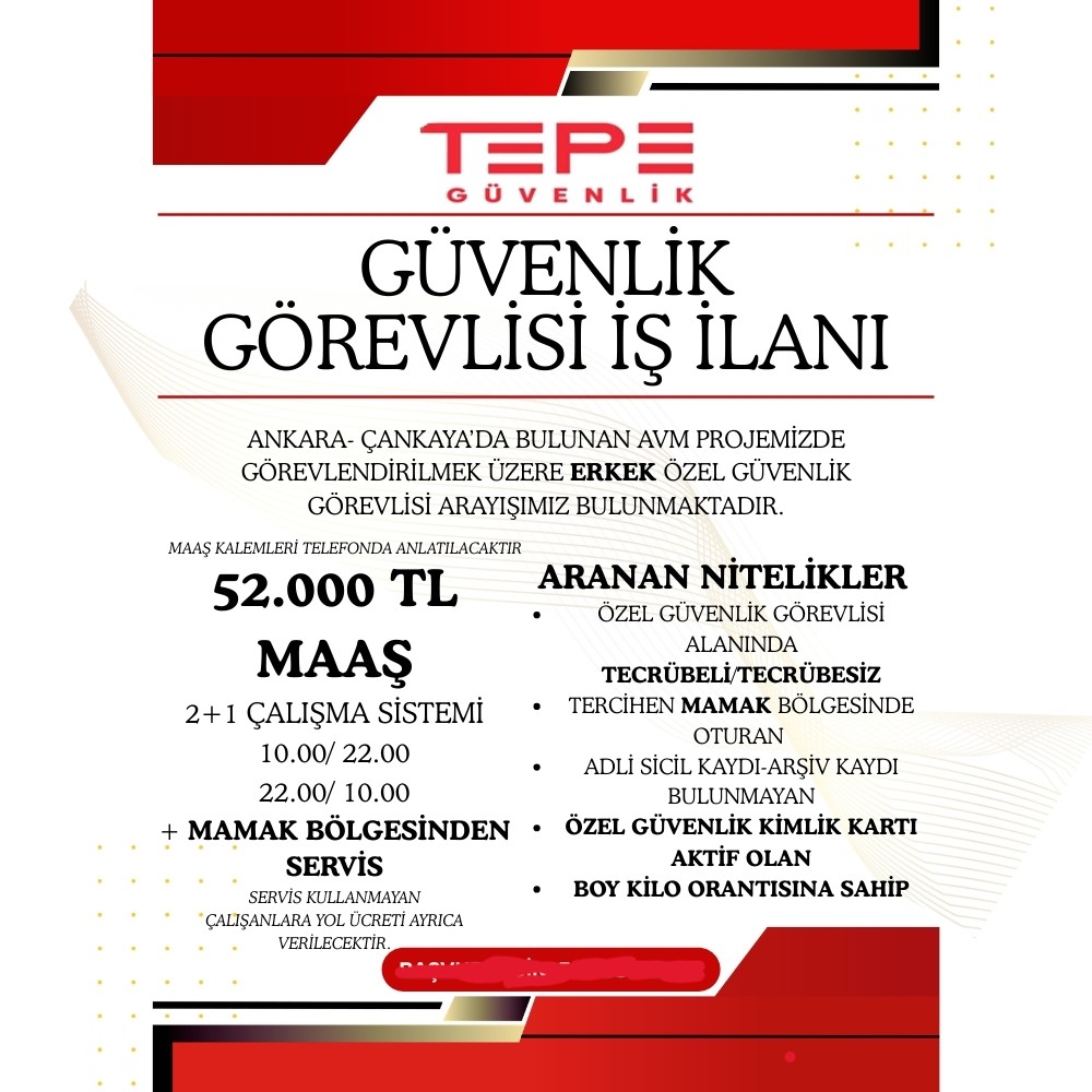 ANKARA ÇANKAYADA AVM PROJEMİZE ERKEK GÜVENLİK ARANIYOR