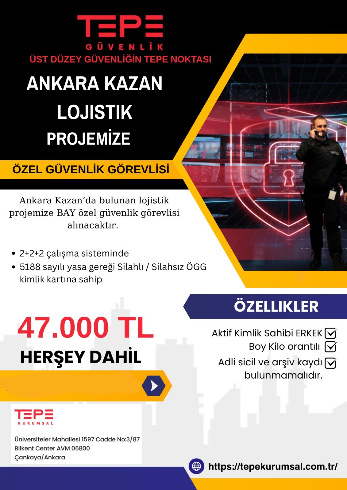 ANKARA KAZAN LOJİSTİK PROJEMİZE BAY GÜVENLİK ARANIYOR