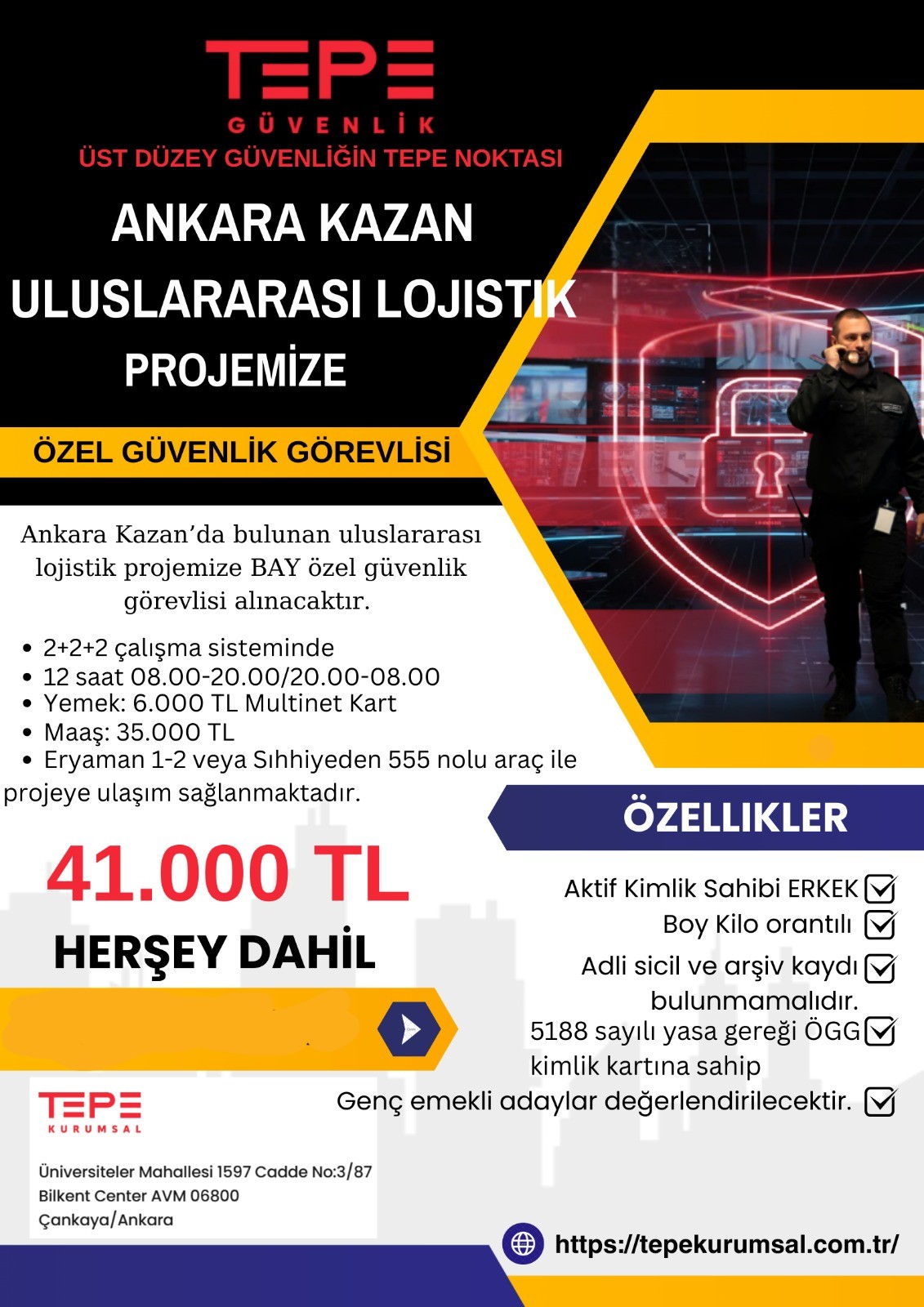 ANKARA KAZAN ULUSLARARASI LOJİSTİK PROJEMİZE BAY GÜVENLİK ARANIYO