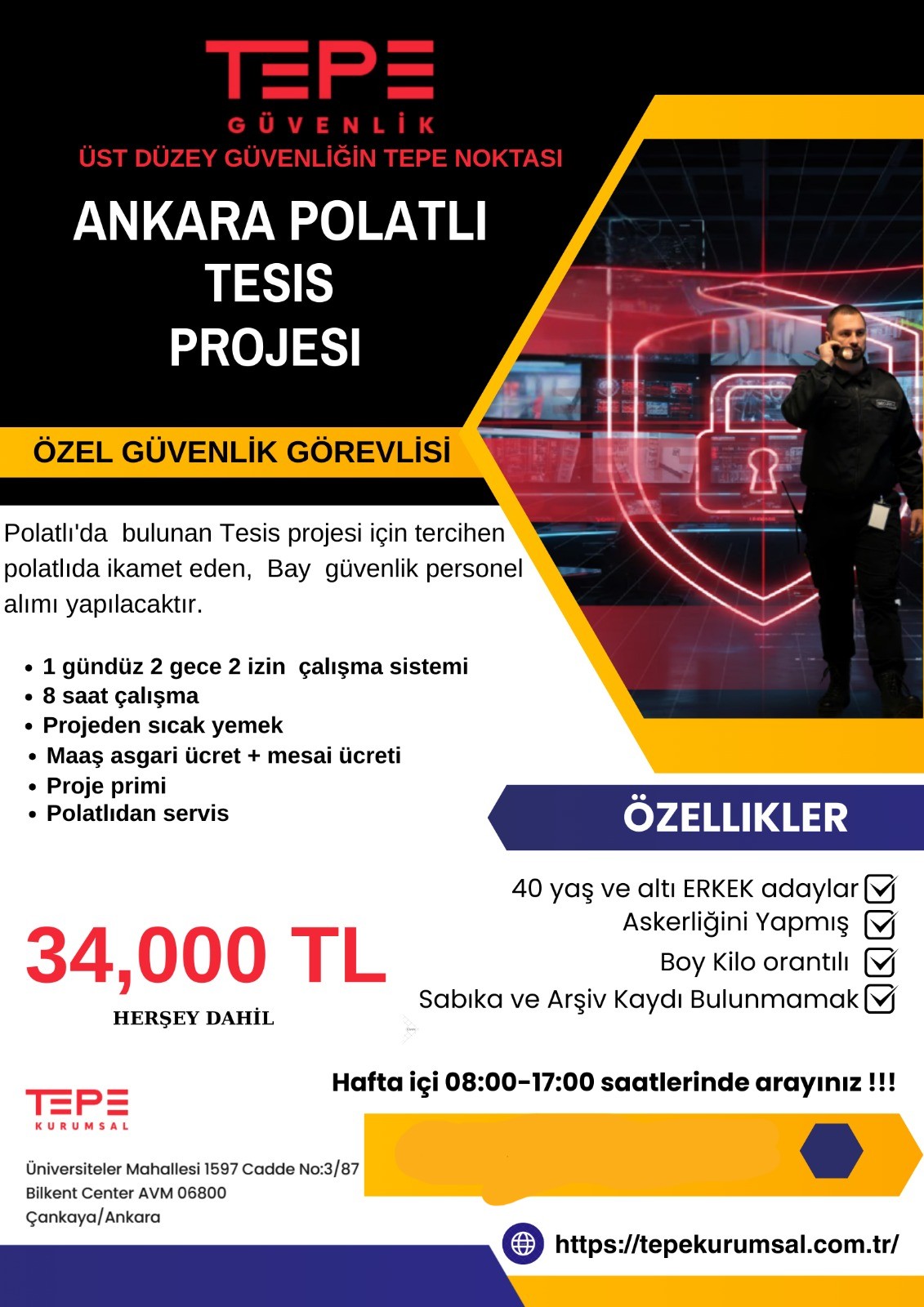 ANKARA POLATLI TESİS PROJESİ ÖZEL GÜVENLİK GÖREVLİSİ (ERKEK)