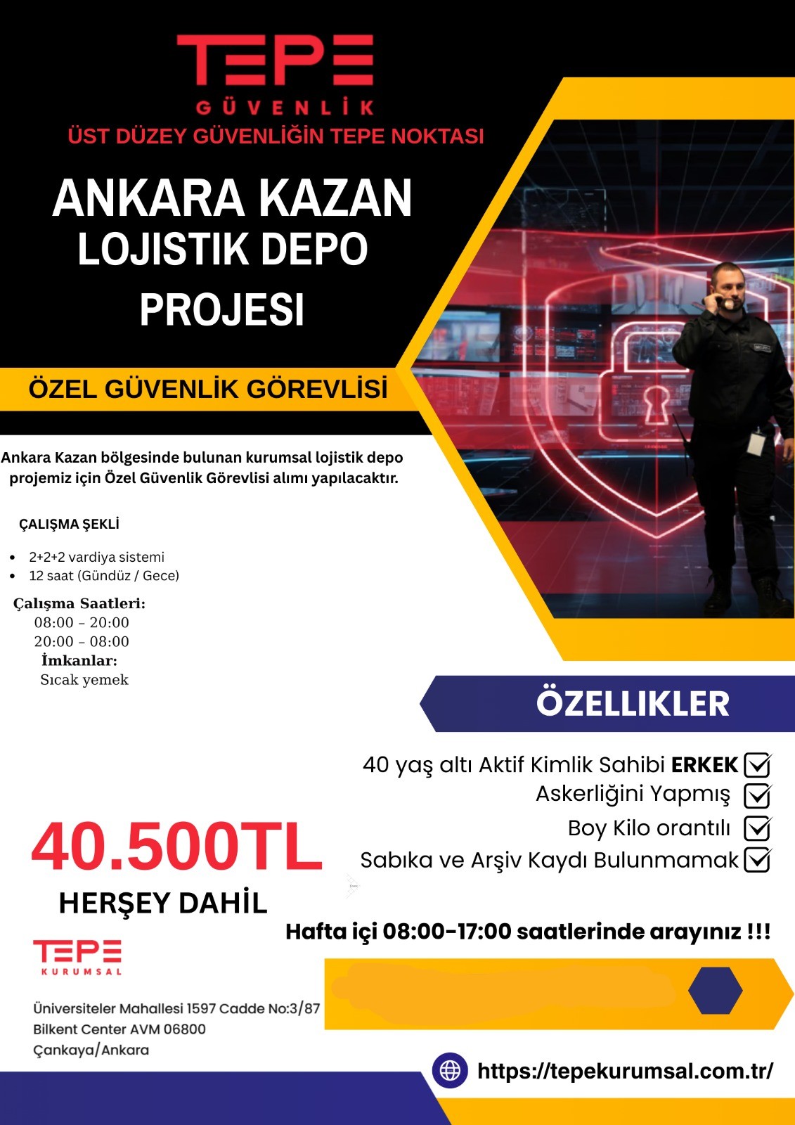 ANKARA KAZAN LOJİSTİK DEPO PROJEMİZE BAY GÜVENLİK ARANIYOR
