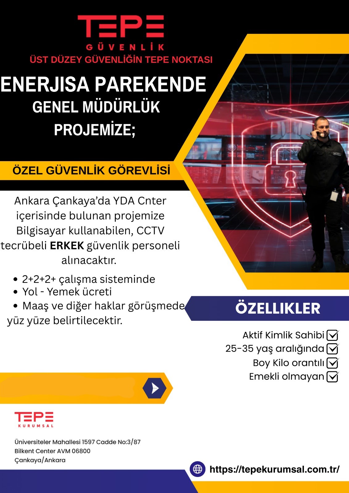 enerjısa parekende genel müdürlük projemize erkek güvenlik görevlisi aranıyor