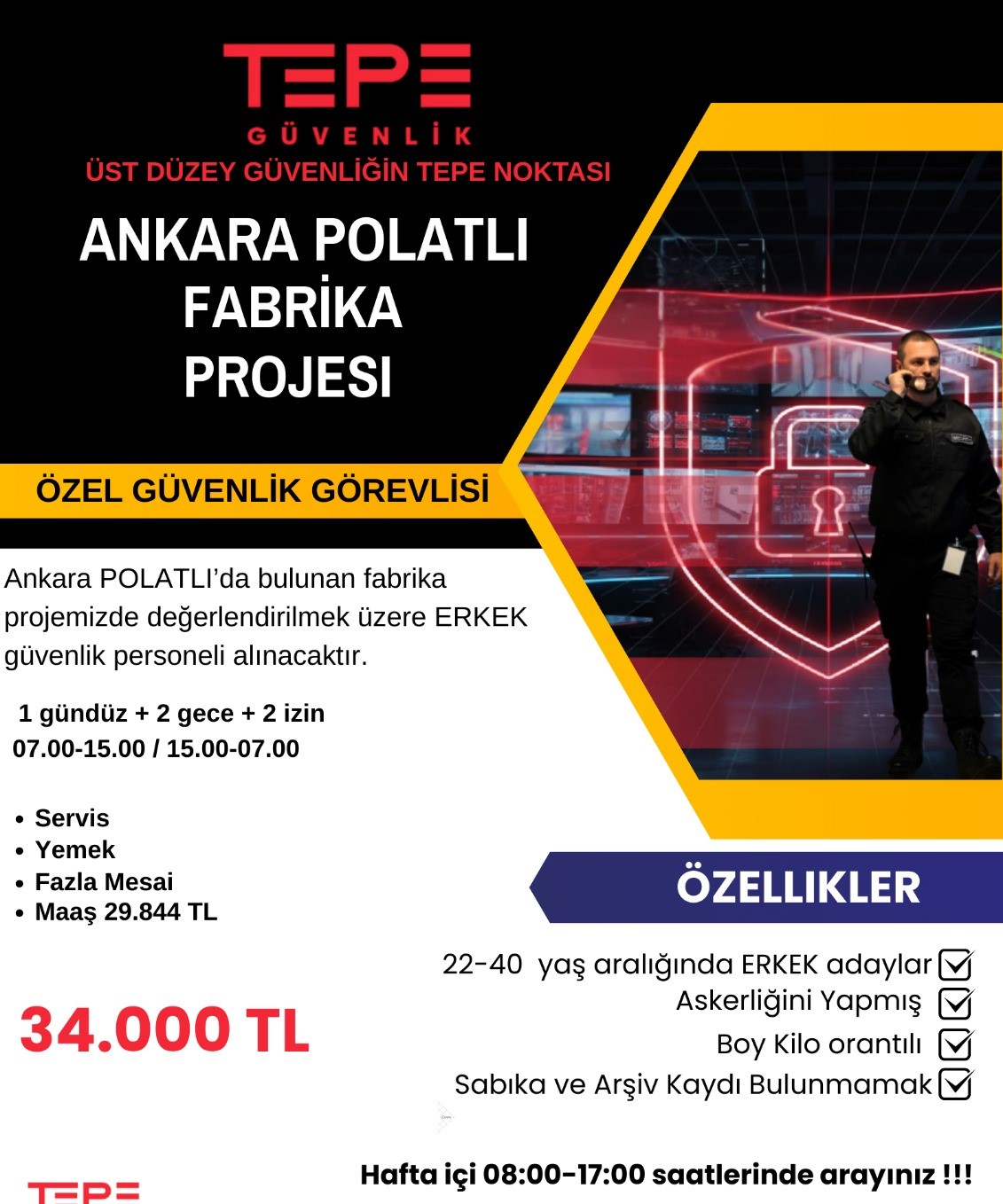 ANKARA POLATLI FABRİKA PROJEMİZE ERKEK GÜVENLİK Görevlisi