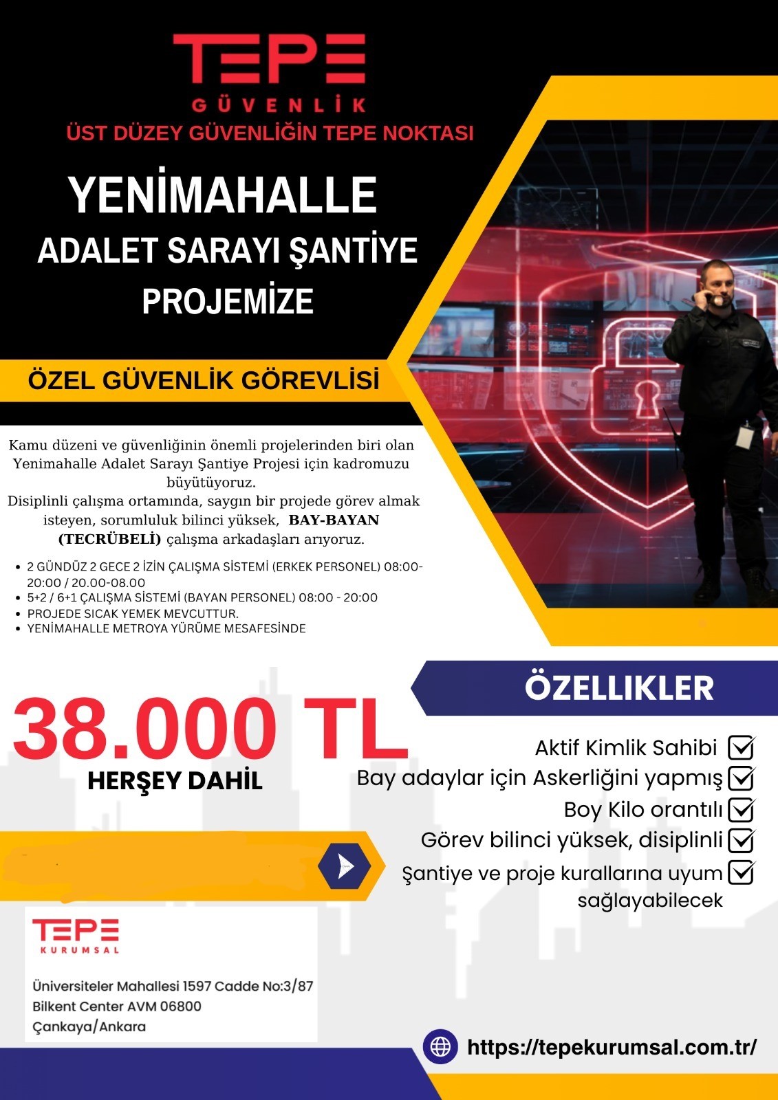 YENİMAHALLE ADALET SARAYI PROJESİ İÇİN BAY BAYAN TECRÜBELİ ELEMAN ARANIYOR