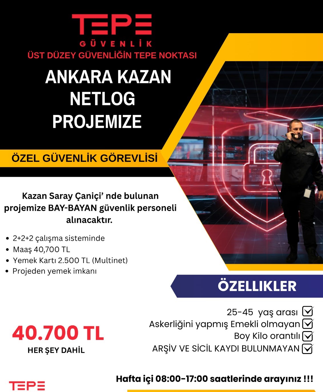ANKARA KAZAN NETLOG PROJEMİZE BAY-BAYAN GÜVENLİK ARANIYOR