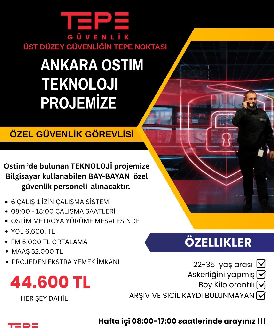ANKARA OSTİM TEKNOLOJİ PROJEMİZE BAY-BAYAN GÜVENLİK ARANIYOR
